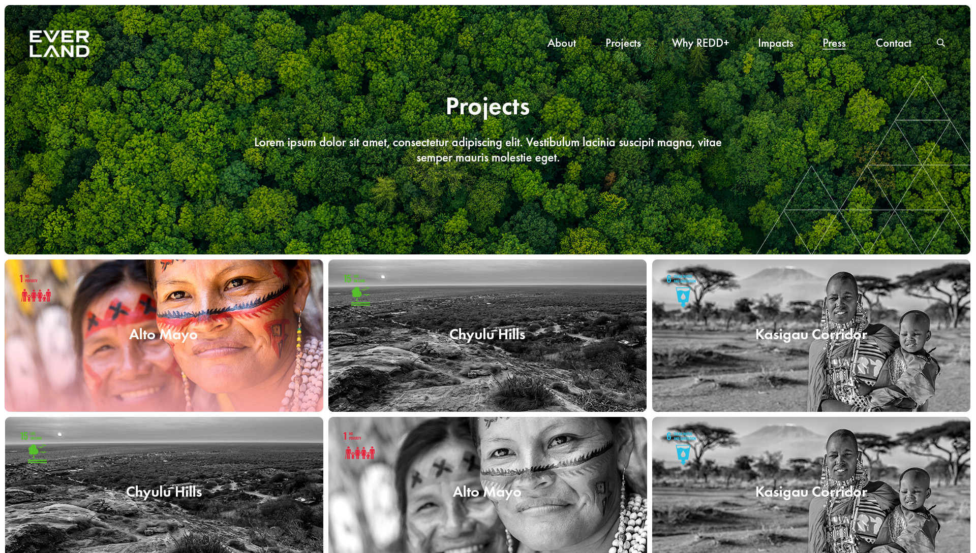 Everland approached Metavative looking for a new website to establish themselves as one of the leading lights in forest & community conservation projects around the world. They had professional photographs and wanted a site that would stand out, making use of the beautiful visuals.